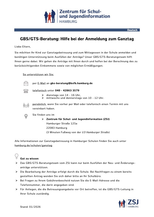 Für den Ganztag an Hamburger Schulen anmelden – Online-Dienst Einstiegsseite – HamburgService
